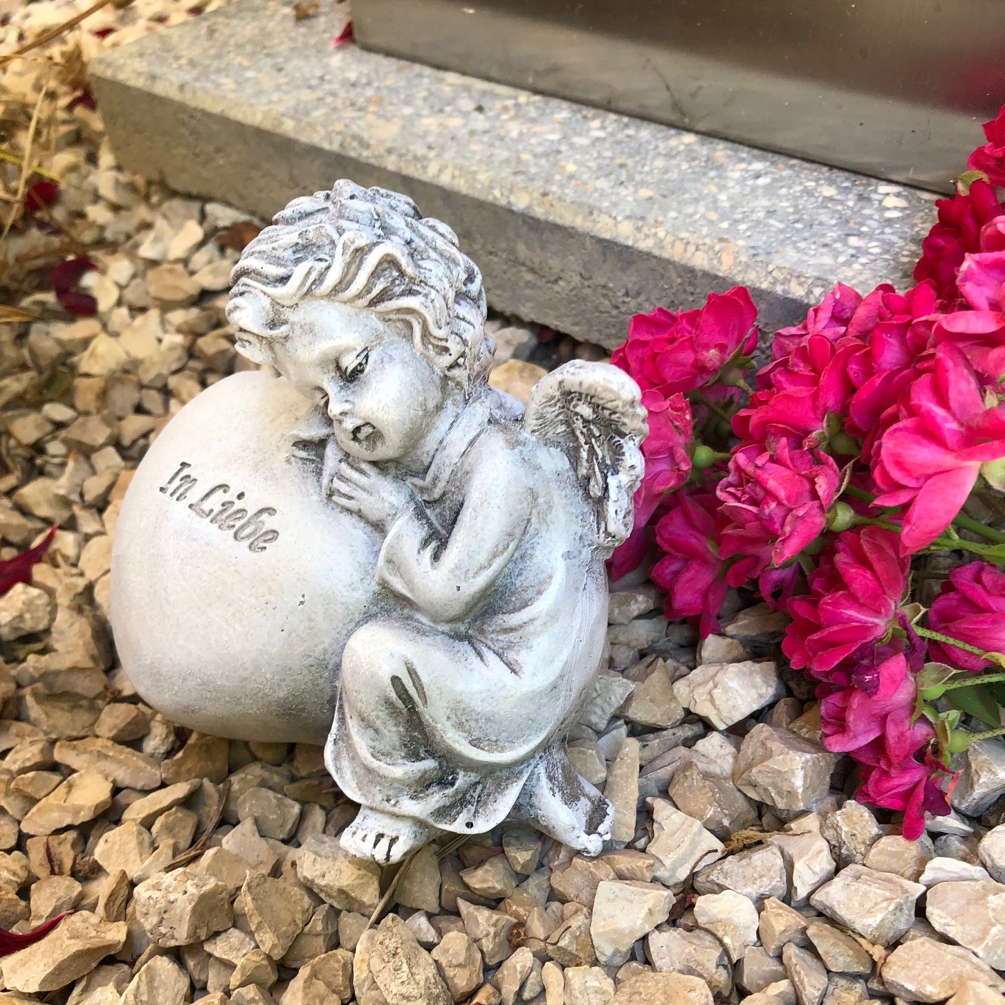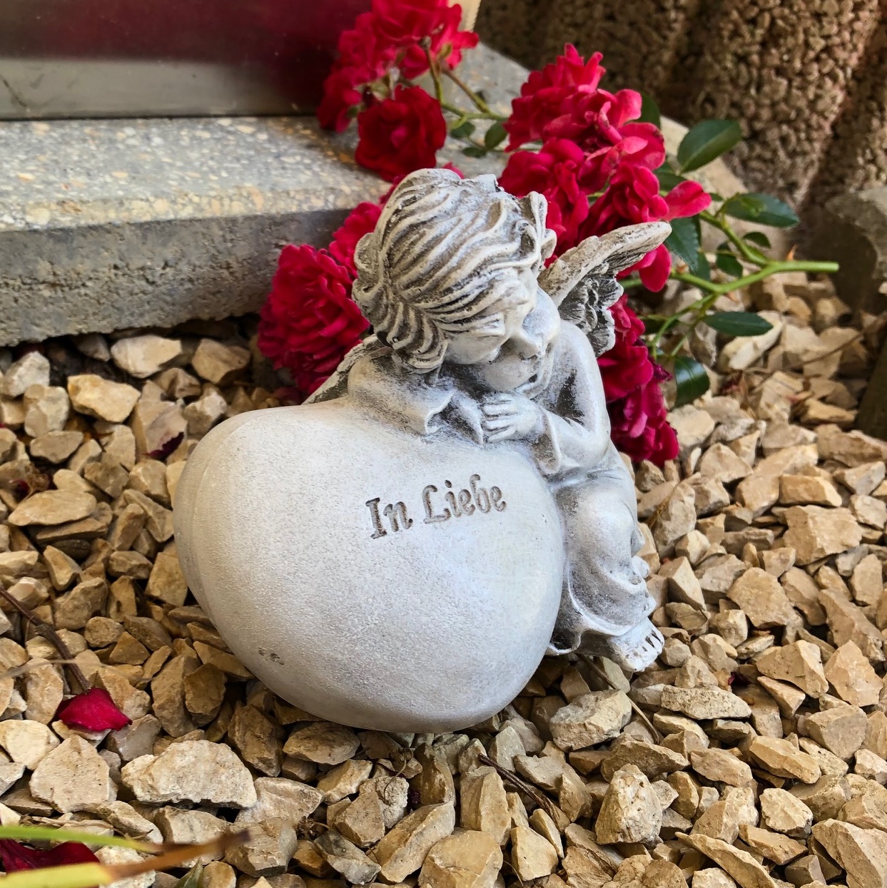 Grabengel Engel auf Herz - In Liebe - Grabherz mit Flügel Grabschmuck Schutzengel