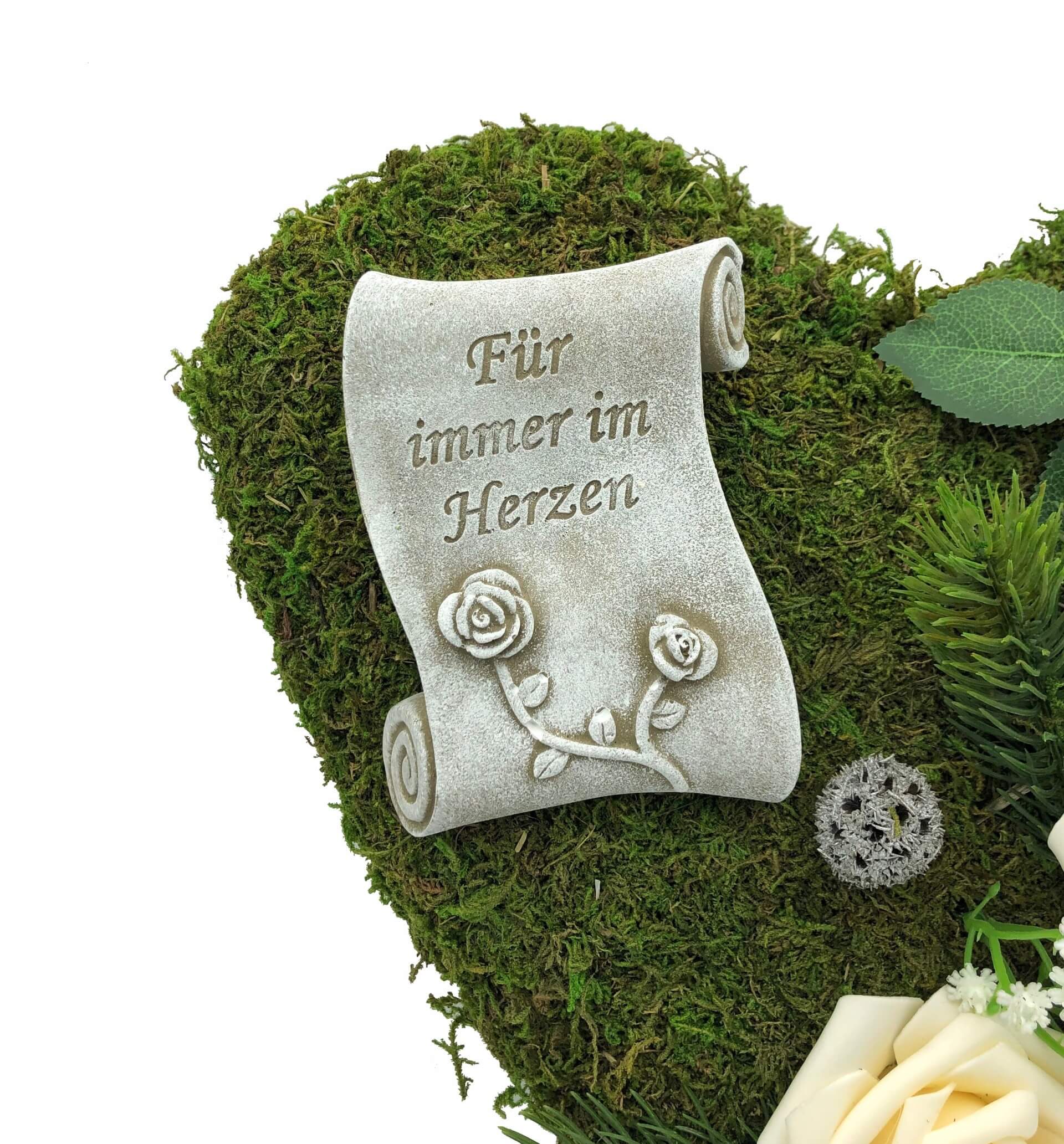 Grabgesteck Grabherz Trauerherz "Für immer im Herzen" 30cm creme Rosen