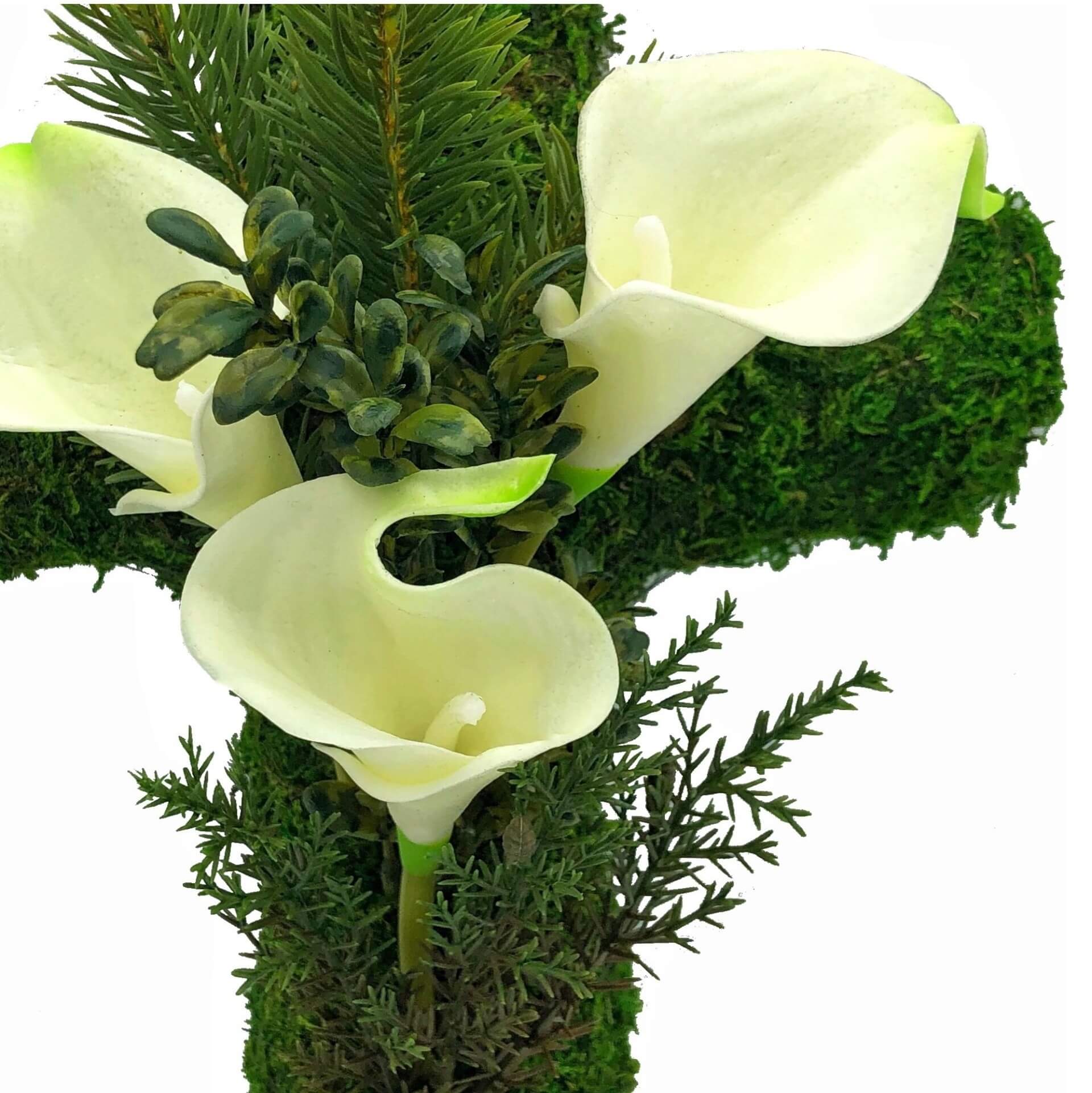 Nr.13 Kreuz 30cm mit Calla in weiß - grün