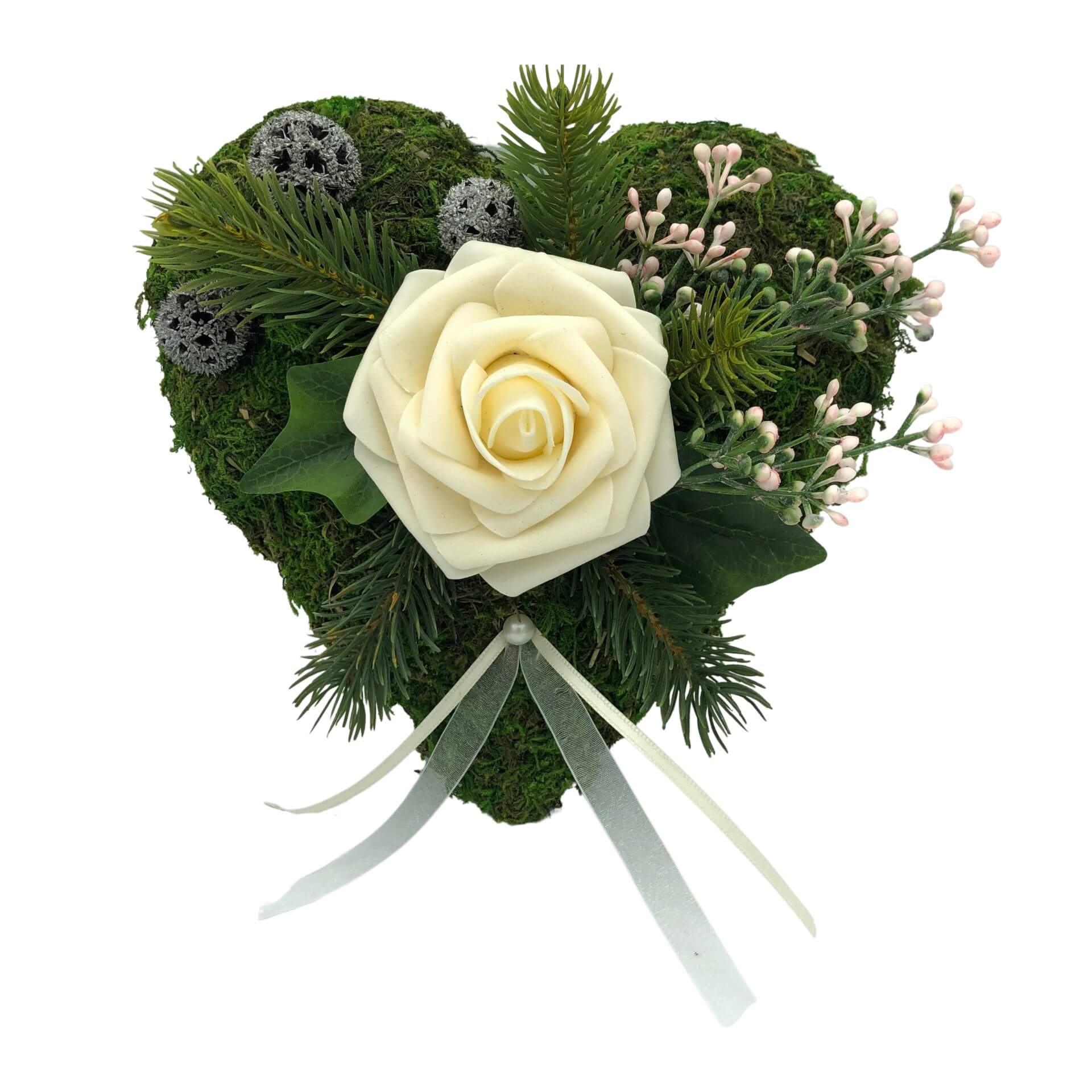 - Moosherz ca. 20cm x 20cm x 8cm hoch mit Rose