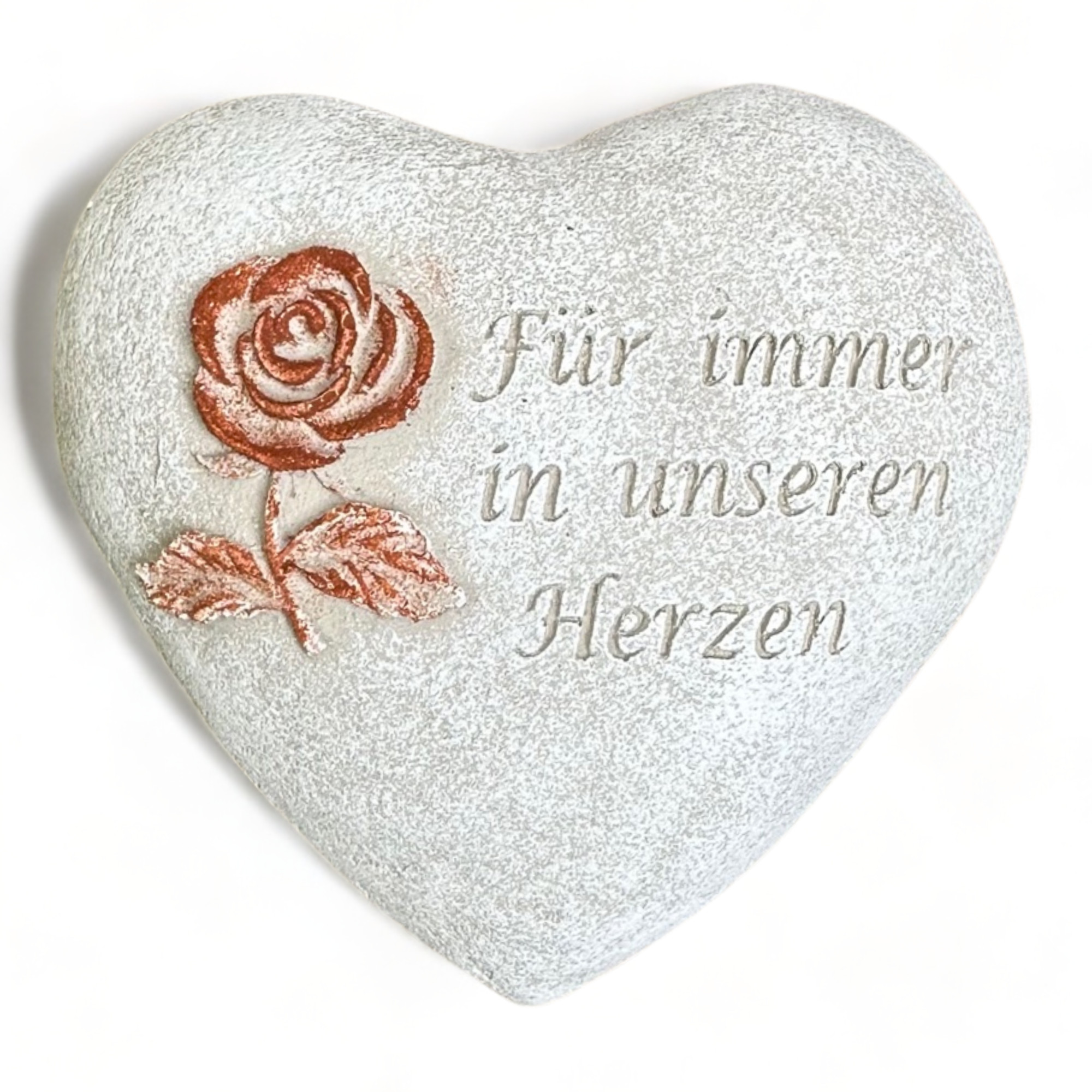 Grabherz mit Spruch und 3D Rose in Farbe Rost