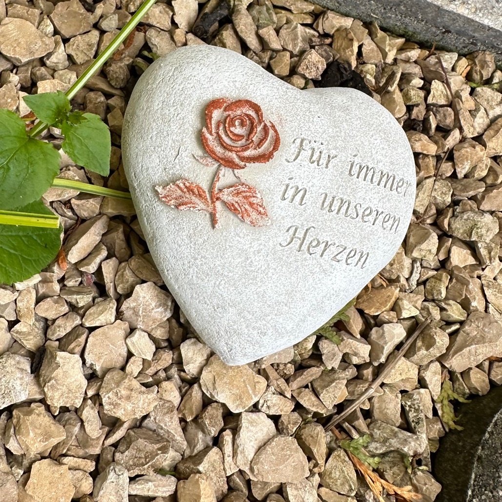 Grabherz mit Spruch - Kreuz mit Rose und Spruch - Du fehlst uns- - frostfest- Steinguss- Steinguss schwarz , Patina weiß- Maße ca.: 8 cm (l) x 9,5 cm (b) x 5 cm (h)- Handarbeit- hergestellt in Deutschland Da unsere Figuren in handwerklicher Arbeit hergestellt sind, können Abweichungen in der Oberflächenstruktur und Farbgebung möglich sein.(Luftbläschen sind kein Mangel)Weitere Gegenstände dienen zur Dekoration und gehören nicht zum Verkaufsangebot!