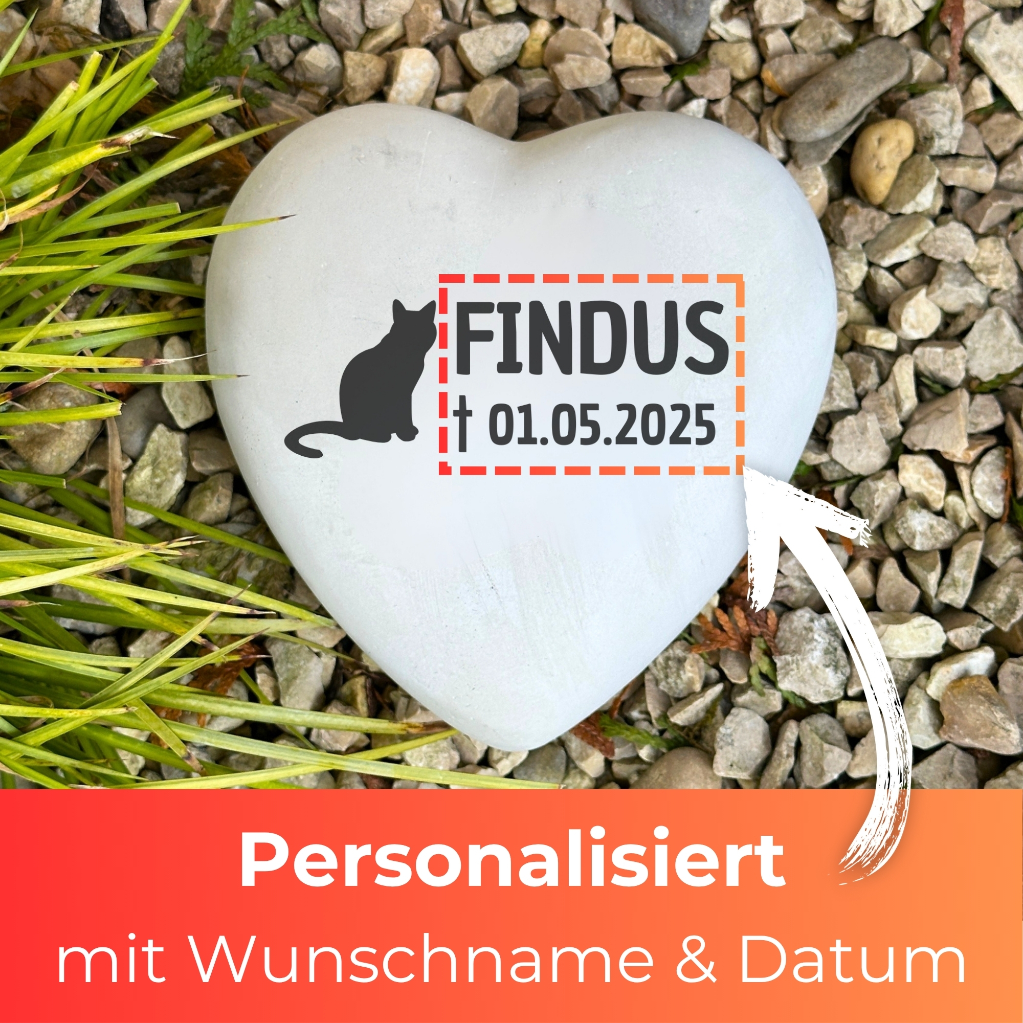 Ein liebevolles Andenken an Ihre geliebte Katze oder Ihren Kater. Dieses handgefertigte Grabherz aus hochwertigem Steinguss ist personalisiert mit Namen Ihrer Katze, frostfest und ideal für den Außenbereich geeignet.