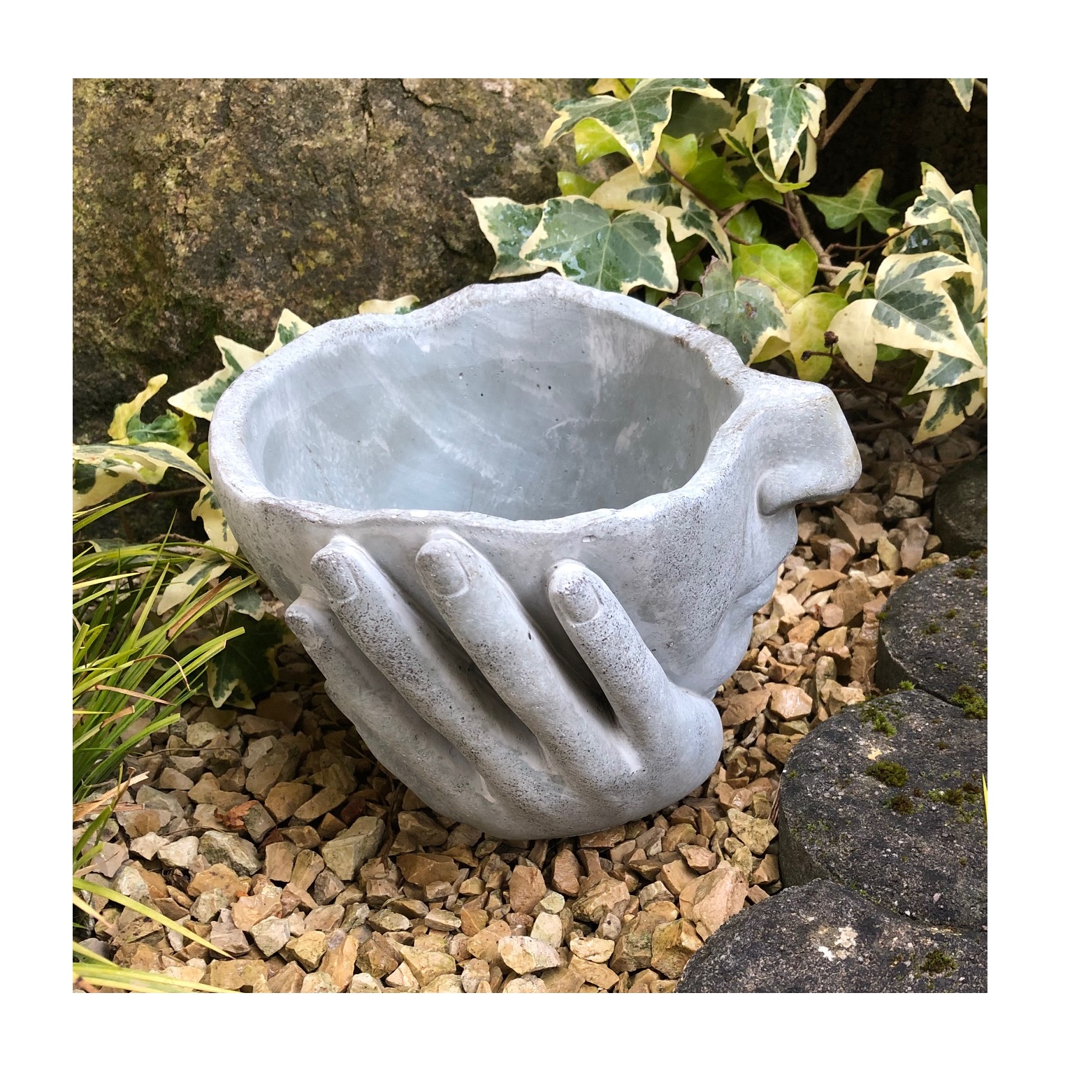 Pflanzkopf Pflanztopf Pflanzschale Blumentopf Übertopf Steinguss Hände