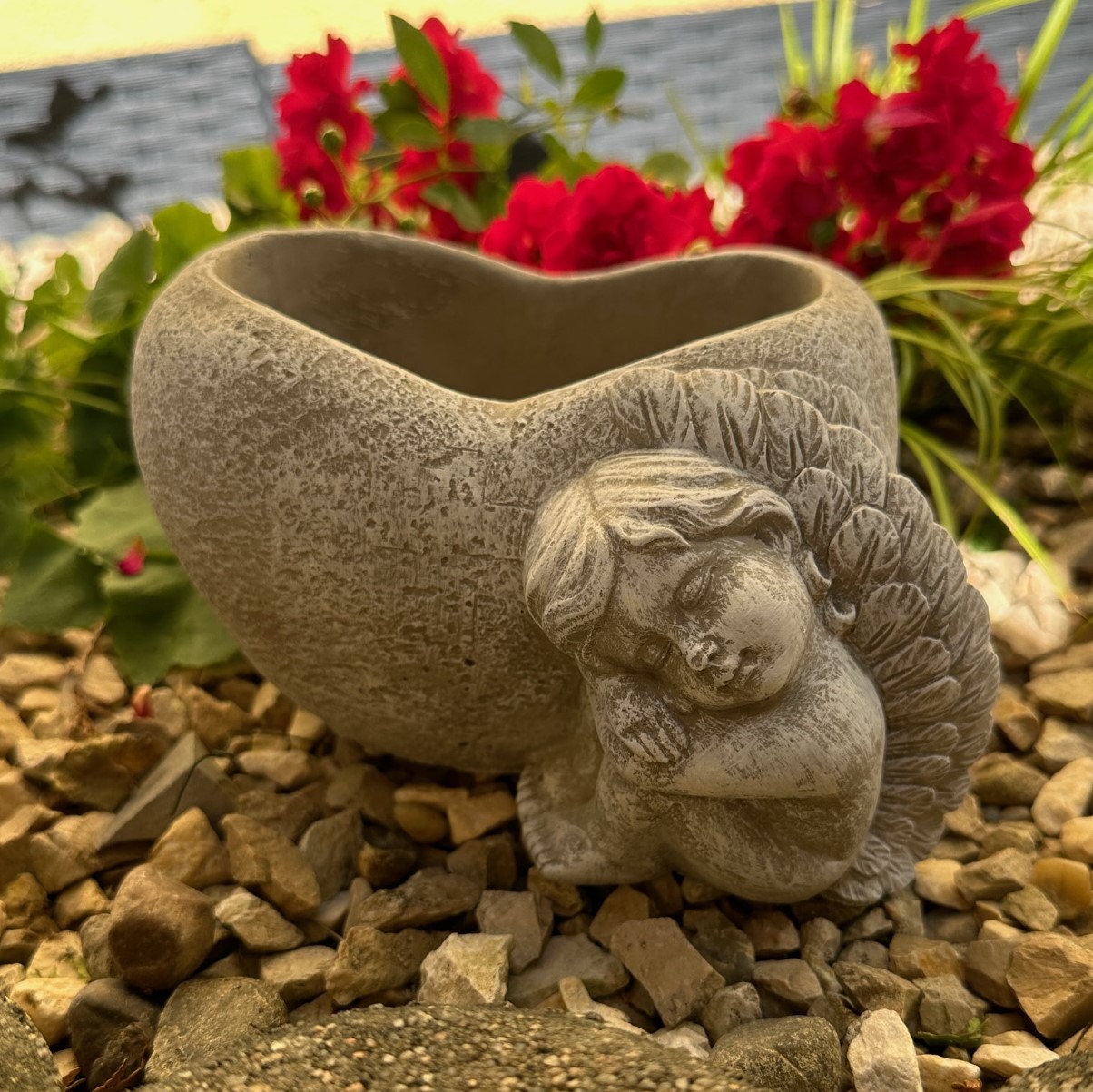 Pflanztopf Engel mit Herz Grabherz Grabschmuck Grabdeko Trauerherz