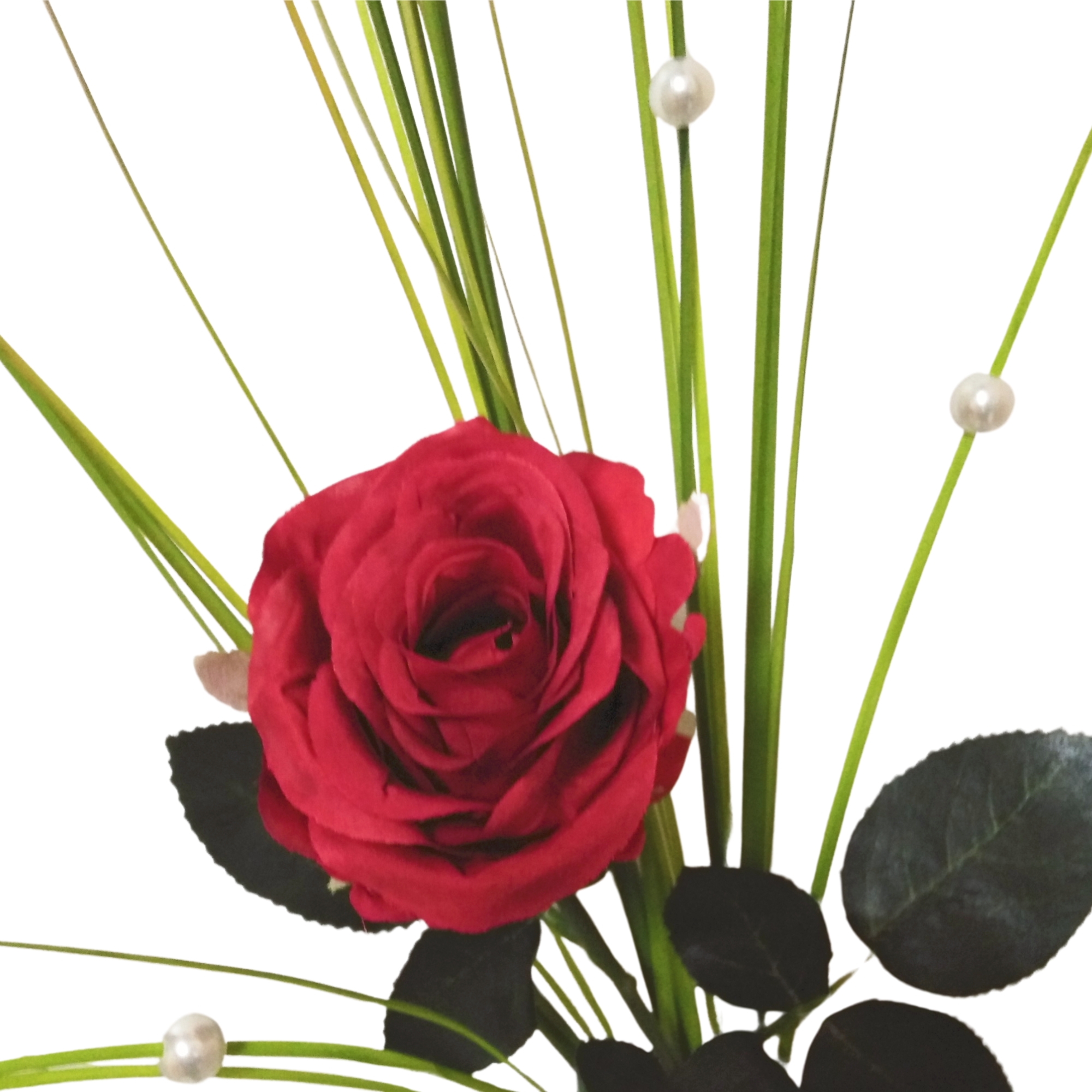 Rose Stielrose Rot mit Grün künstliche Rose Strauß Rosenstrauß