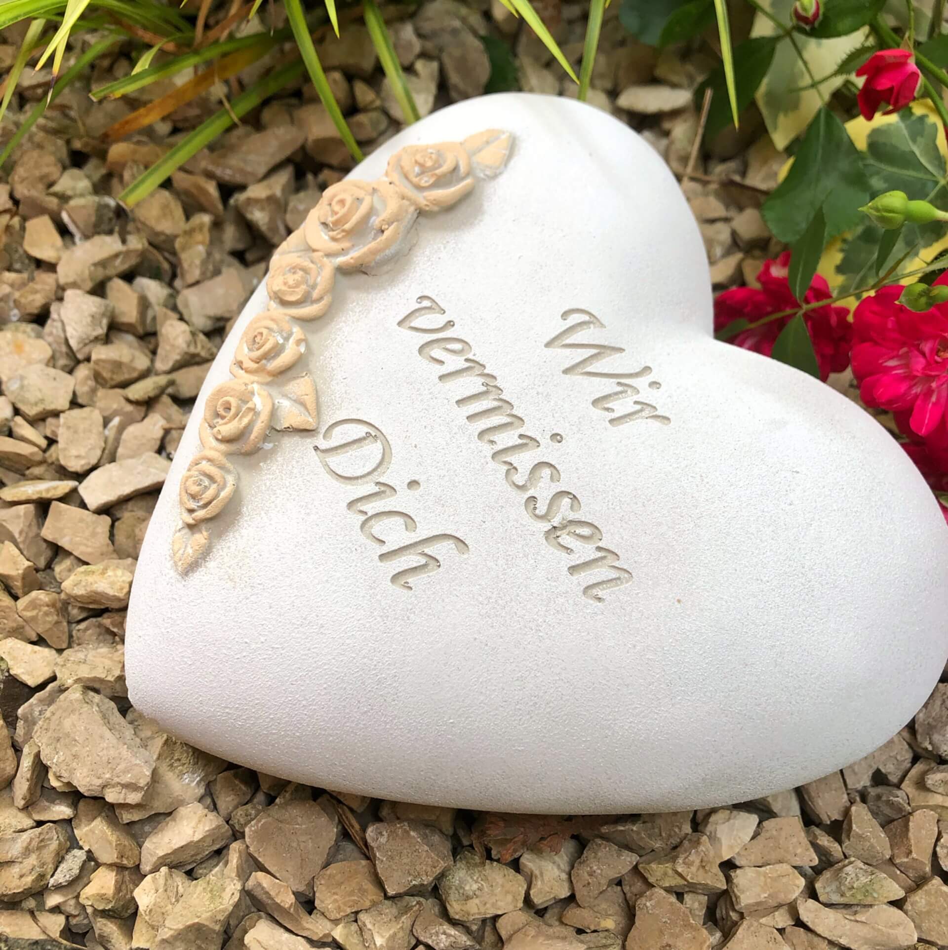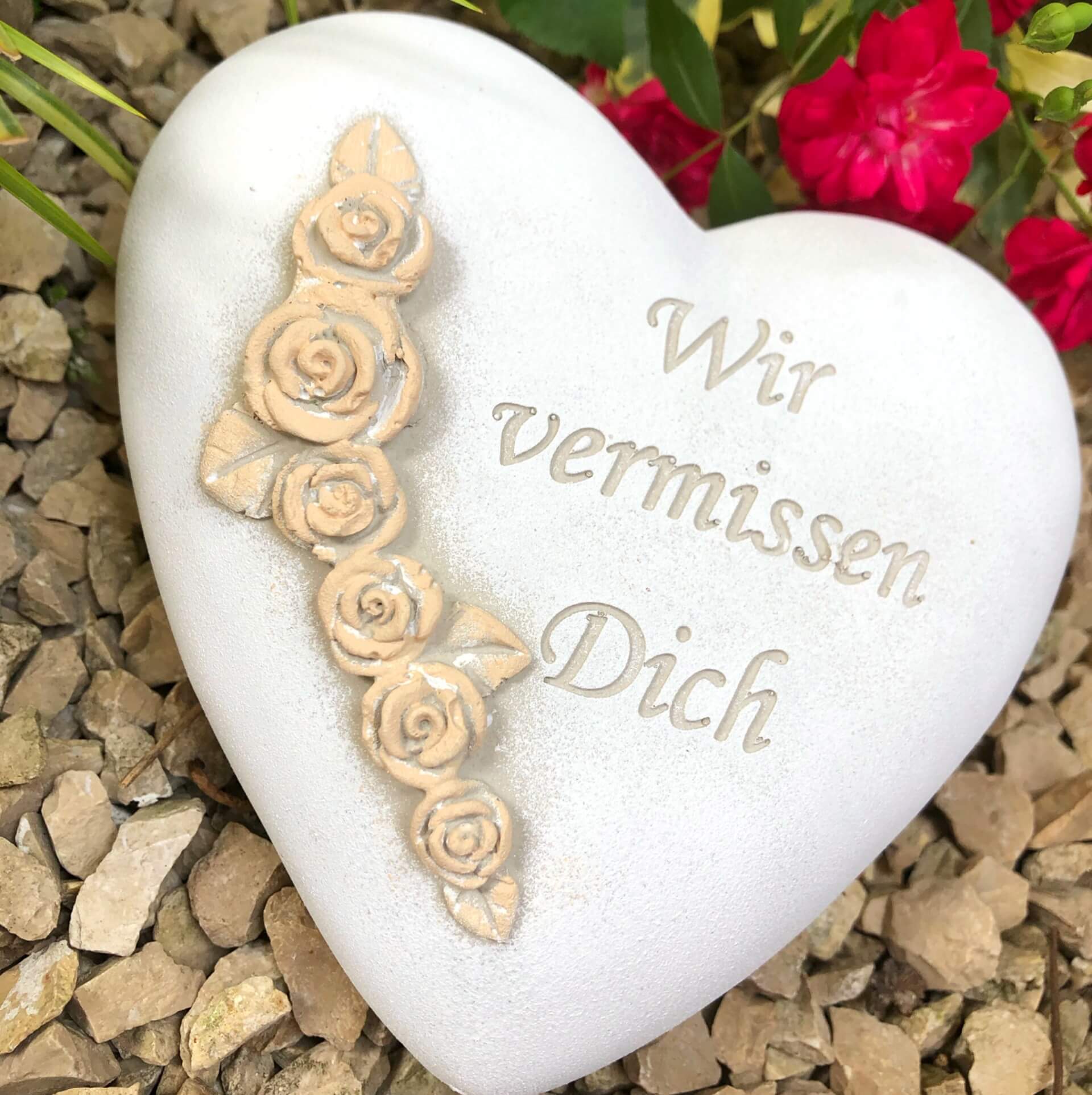 XXL Grabherz Spruch Grabschmuck Grab Herz - Wir vermissen dich - ca.1200g Rosenranke Sand